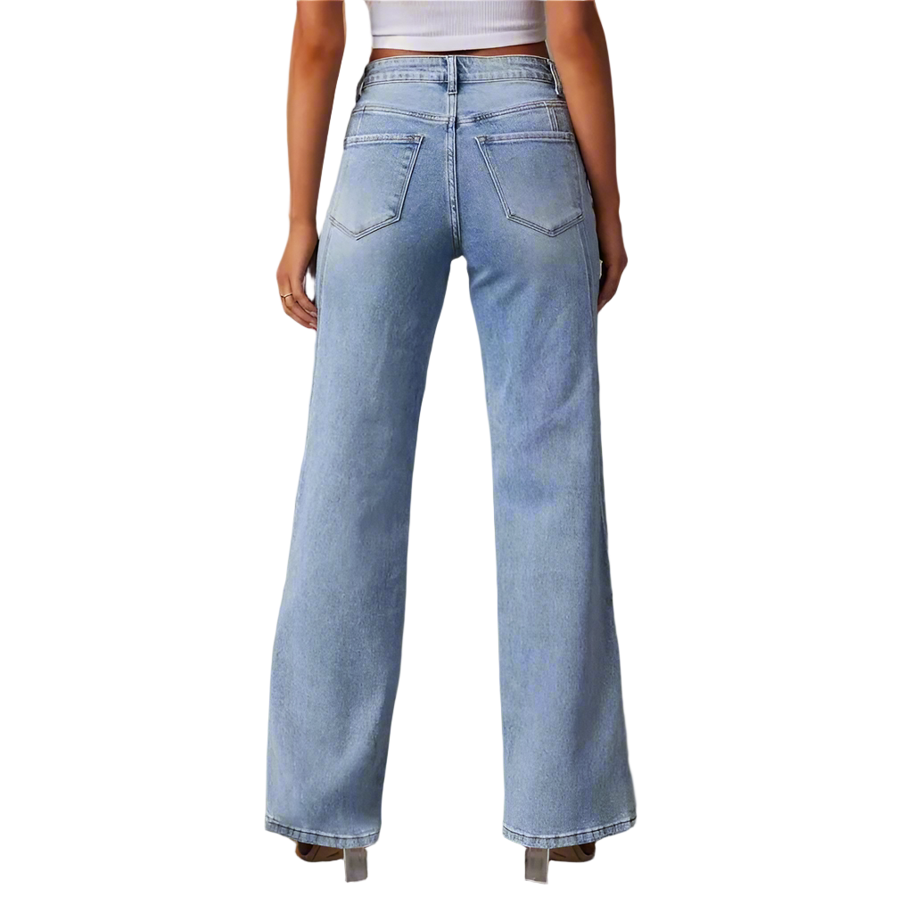 High-Waisted Wide-Leg Jeans Pants with Angled Seams