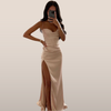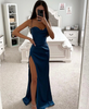 Maxi Dress with Spaghetti Straps, Corset Bodice, and High Slit
