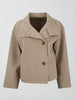 Single-Breasted Cropped Jacket with Wide Collar and High Neckline Detail